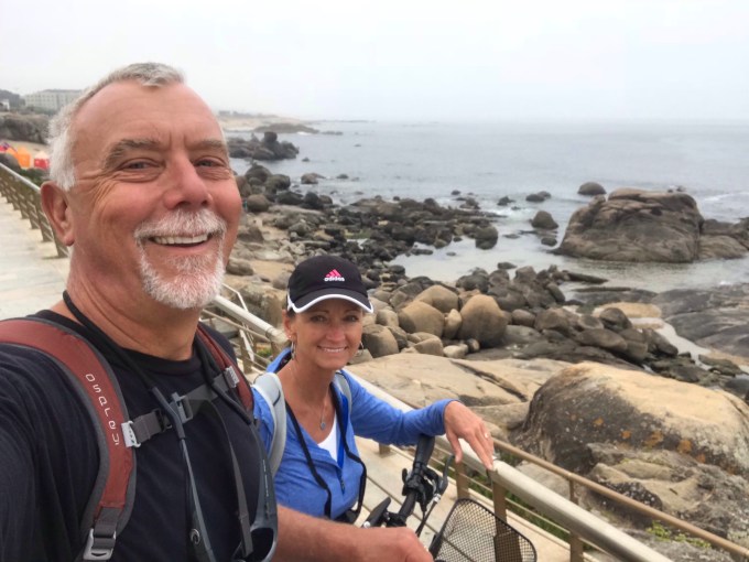 The highlight for us was renting electric bikes and cruising the riverfront to the ocean and south to the Senhor da Pedra (Lord of Stone) chapel located on a rock that at high tide makes it inaccessible. We have never ridden electric bikes before and they are pretty heavy and a little intimidating at first. We immediately had to cross over the biggest bridge in Porto, luckily it is only two lanes of slow traffic. We were able to just follow behind the cars with no passing as we did not want to crash just 5 minutes into our ride. The electric bikes are pretty cool.  Normally Terri has to hustle to stay up with me and she has to peddle on the downhills.  With the electric bike, she can just kick it up a notch and go whizzing by me with a smirk😜 and with our weight difference she uses a LOT less battery than I do😤.