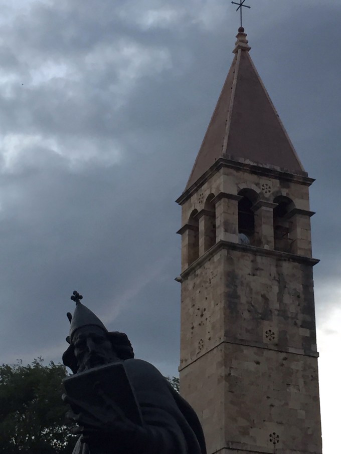 We were close to old town which always has the old Palace, church and statues of the important historical figures. The weather was still not good, windy with rain, but we ventured out anyway. Terri had read about one of the statues located next to old Palace, a huge 50+ foot bronze of some long-haired bishop/philosopher wearing sandals. According to legend, you must make a wish and rub his toes that show through his sandals. Terri told me to “wish for better weather,” I think we both did as the next day was very nice. Teri was so happy she drug me by the statue for another wish, and I complied: same statue, same toes, same wish.