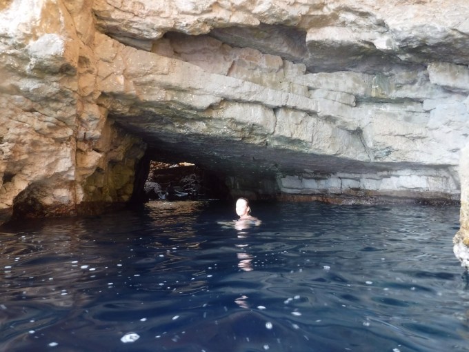 Because of limited tourism there are not many attractions to see. We spent one morning exploring the national park that covers the north end of the island and one afternoon hiking to Odysseus’ Cave, a natural cave that is only accessible by foot or boat. Terri joined me in the water at Odysseus’ Cave and we swam through it despite the water’s relative coolness. Fortunately the Adriatic was relatively calm as climbing up the rocks can be a challenge.