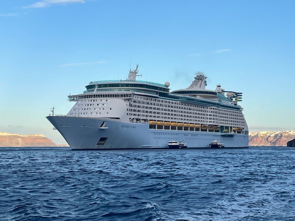 Voyager of the Seas in Santorini, there is no dock, you must tender into the dock